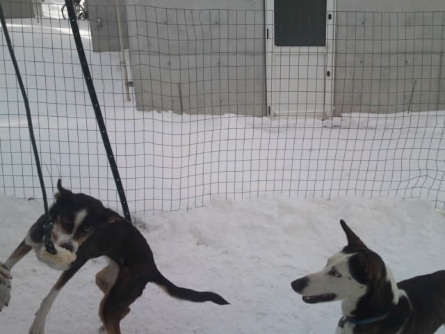 朝食後の涼しい時間に犬たちをフリーにして遊びました。