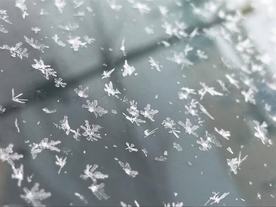 車のフロントガラスには、雪の結晶が乗っていましたよ