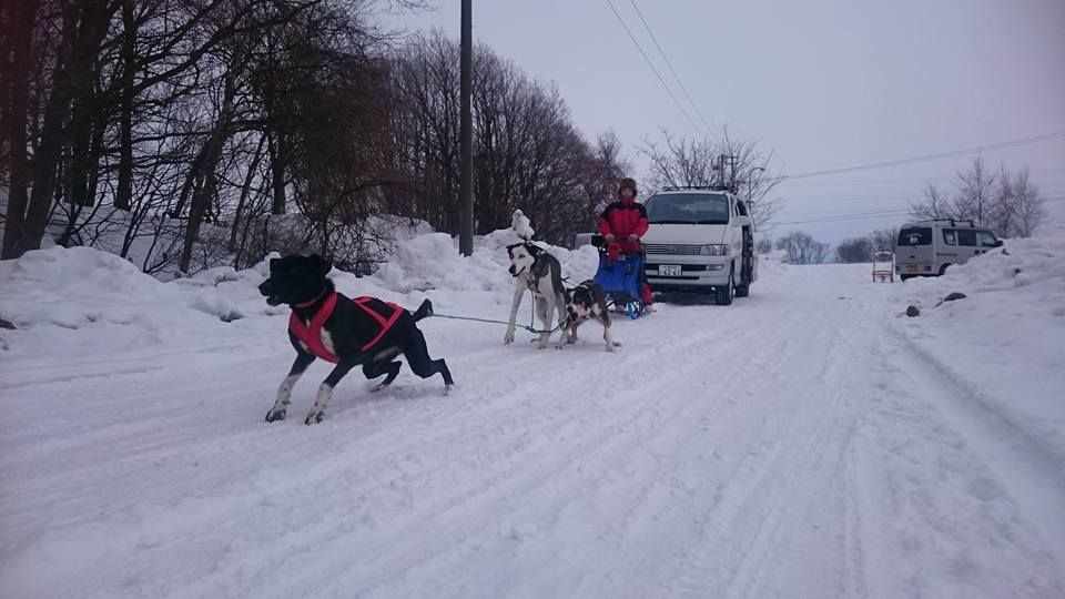 2~3軒ある農家さんの前の道路を失敬したちょっとテクニカルなコースで、初めて走る私はリーダー犬に道を教えながら進みました。