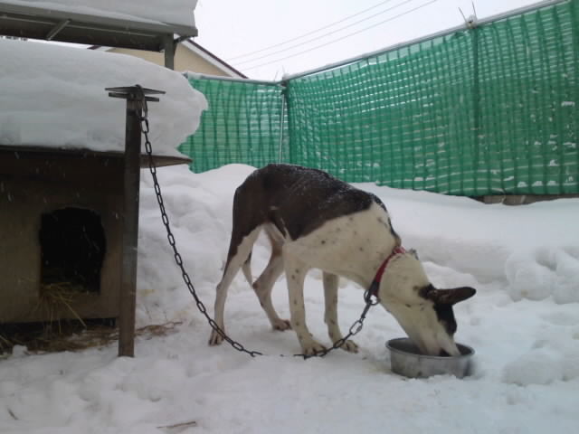 食べ終わった犬たちは雪がどんどん降る中フリーランして遊んだよ。(^O^)