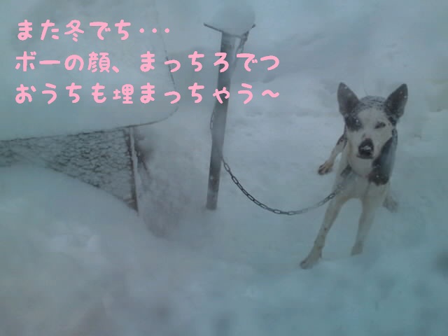 ボーは雪かきする間だけ小屋に入ってもらいました。