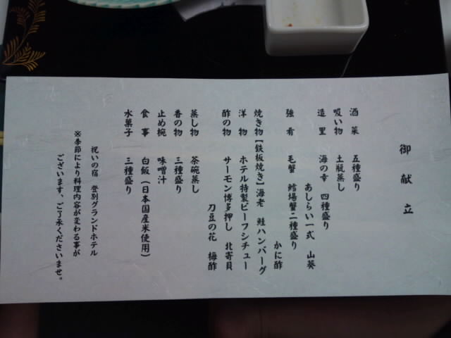 お祝い事で宿泊を頼んだので、夕食はバイキングじゃなくて個室でした。