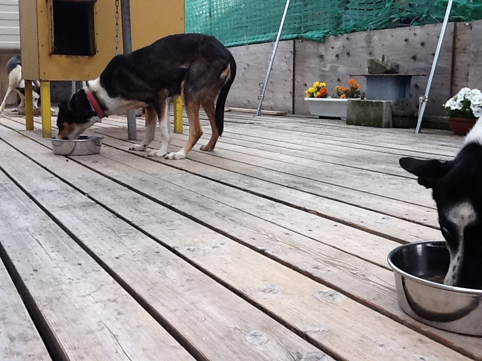 っと思ってワンたちにご飯を早めにあげようとしたら、ポツリポツリと雨が降ってきた。