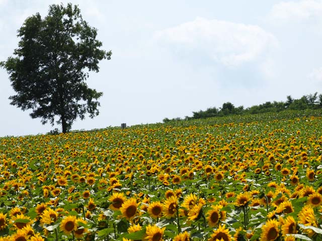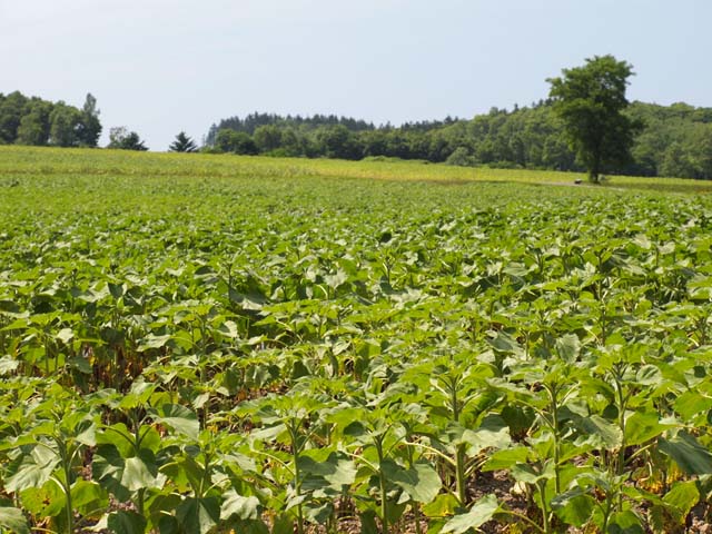 あれ?ひまわりドコ?状態な畑。やっちまったか?と思わせる風景がコチラ
