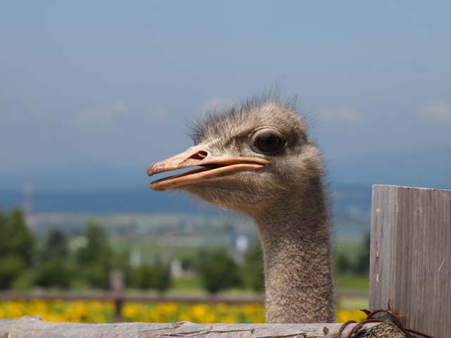 ね、ね、やばいでしょ。せっかく来たのにマジかよー。って思いながら歩いてたら、カモとダチョウが現れた。違うんだってばー!私はひまわりが見たいのよー!