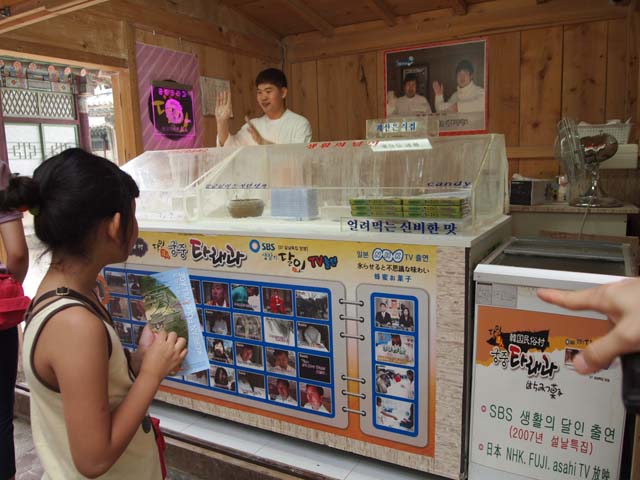 王様がおやつとして楽しんだり、宮中でお客様をもてなすときに出されていたクルタレ(꿀타래)という菓子の実演販売をやっていました。