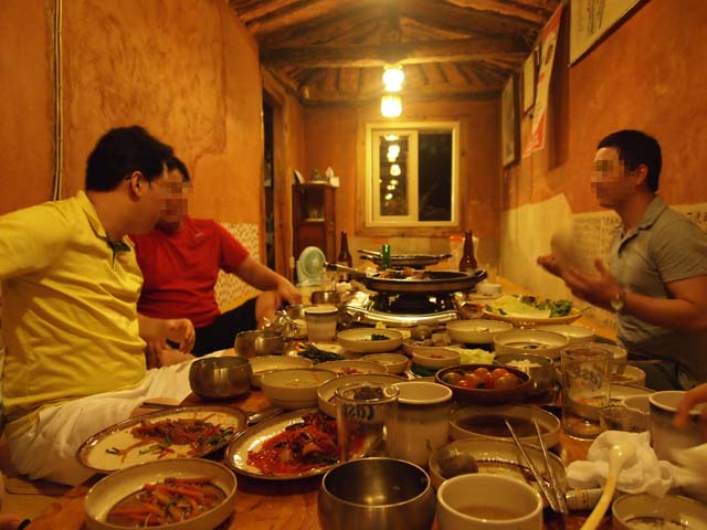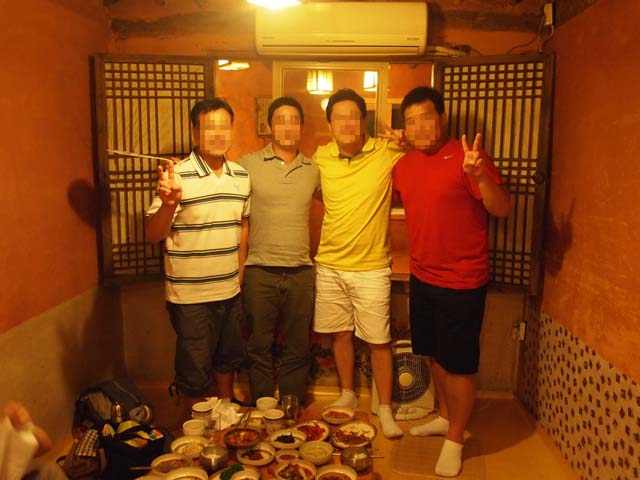 男たちは何度も乾杯を繰り返します。乾杯を何度もするのが韓国流だそうです。