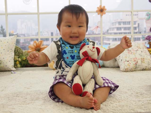 ちびもっちは家族写真の他に2枚別の衣装で写真を撮ってもらったよ。