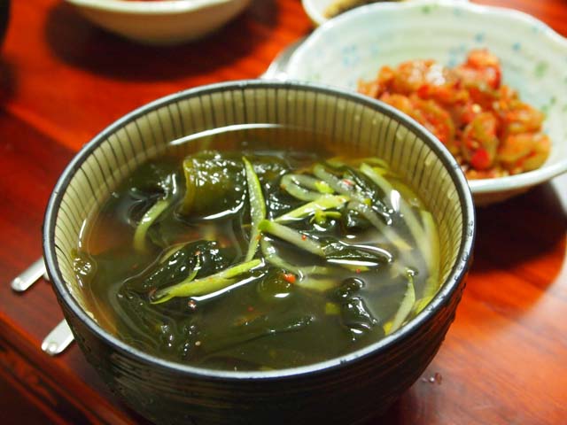 特にお母さんさんが用意してくれた冷たいわかめスープ(右)は最高です。