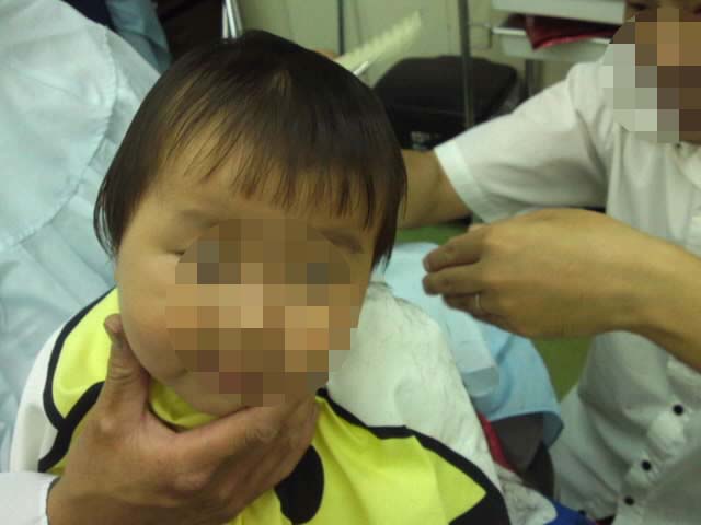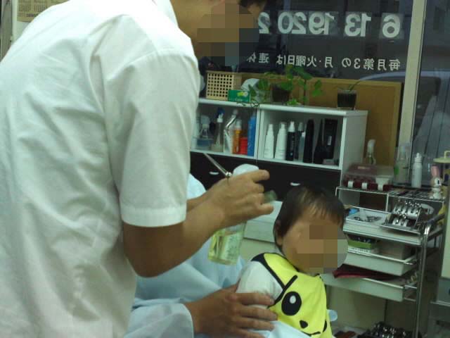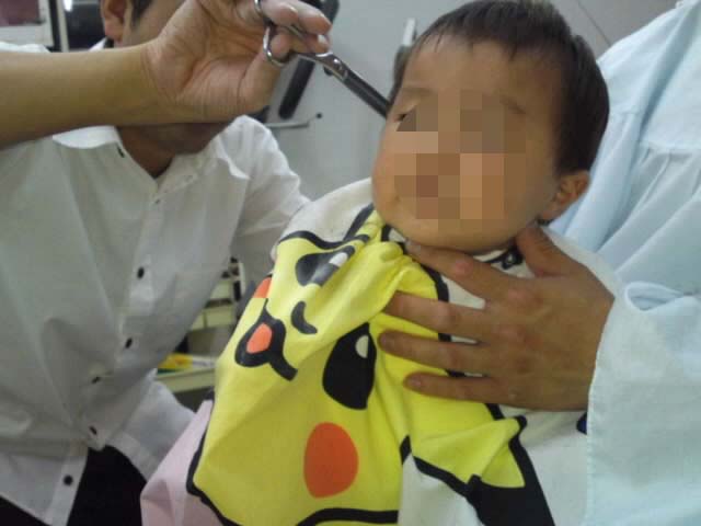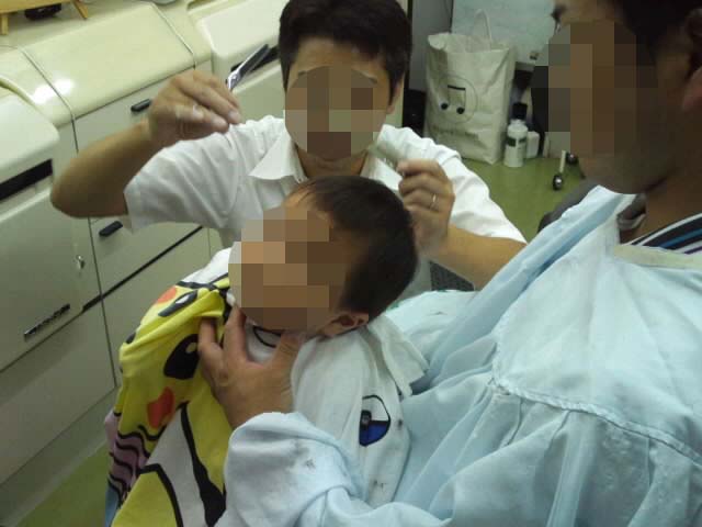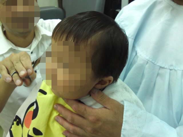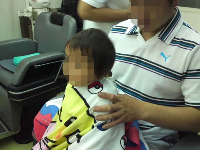 この時はまだ前髪パッツン。〔笑〕あとですきバサミで手直ししてくれるって。よかったね。