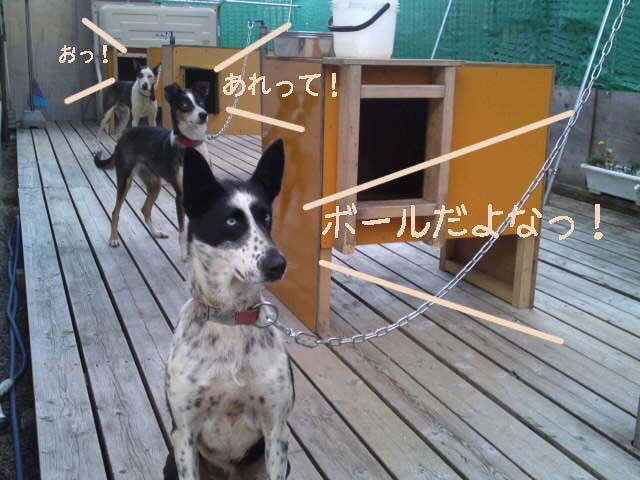 ボール大好きな我が家のワン'sはもう釘付けよー。