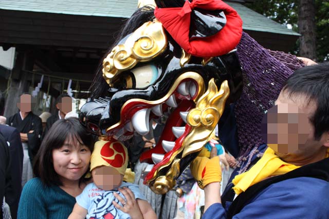 義兄とちびもっちの従兄弟にあたる義兄の息子が獅子頭と獅子取りとして参加。