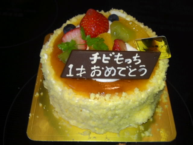 先日、実家でお祝いしたときにケーキの味を覚えたちびもっちは、早く口に入れて欲しくてじたばたしてたよ。ケーキおいしいよねー。良かったねー。