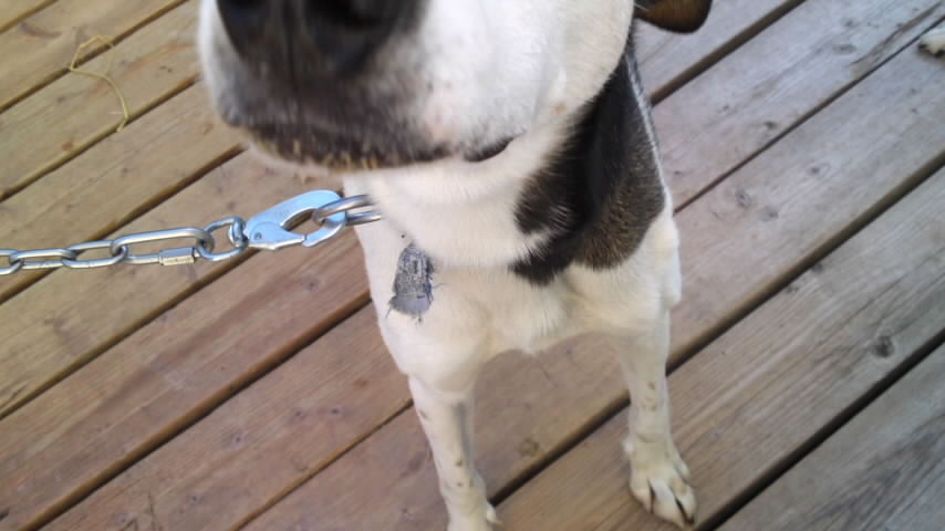 良かったねぇ、ボーちゃん。あごに食べかすついてるよ。♪~♪~ ( =o=)ゞ~~♪~~♪ラララー...