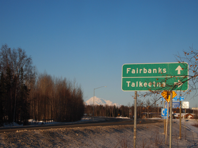 まっすぐ行ったらフェアバンクス、右に行ったらタルキートナ。そしてマッキンリー!