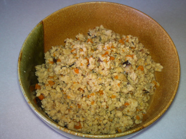 左が高野豆腐のそぼろ。ご飯にかけて食べるとうまし!