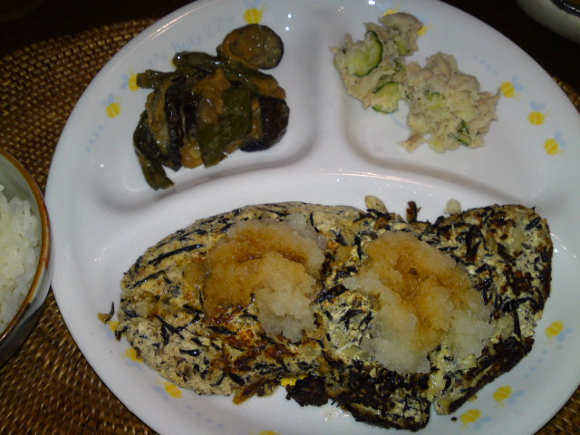 豆腐ひじきハンバーグは大根おろしと青じそドレッシングで食べ、
