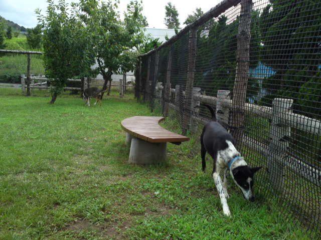 管理人は常駐していませんが、どこから来たのかと、犬の名前を記帳するノートが置いてあるので旦那さんが記帳を済ませました。