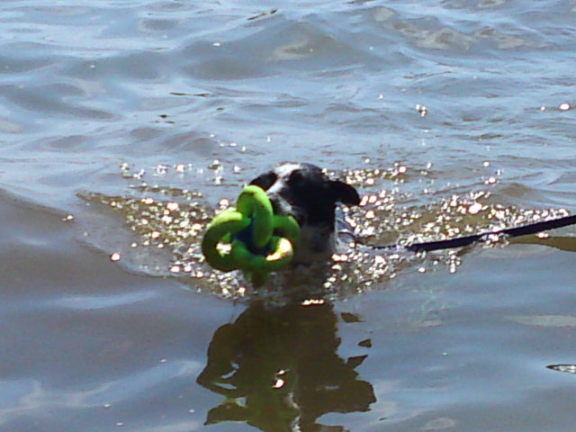 ウィッシュは泳ぐのも大好きなので旦那さんと湖でレトリーブ!